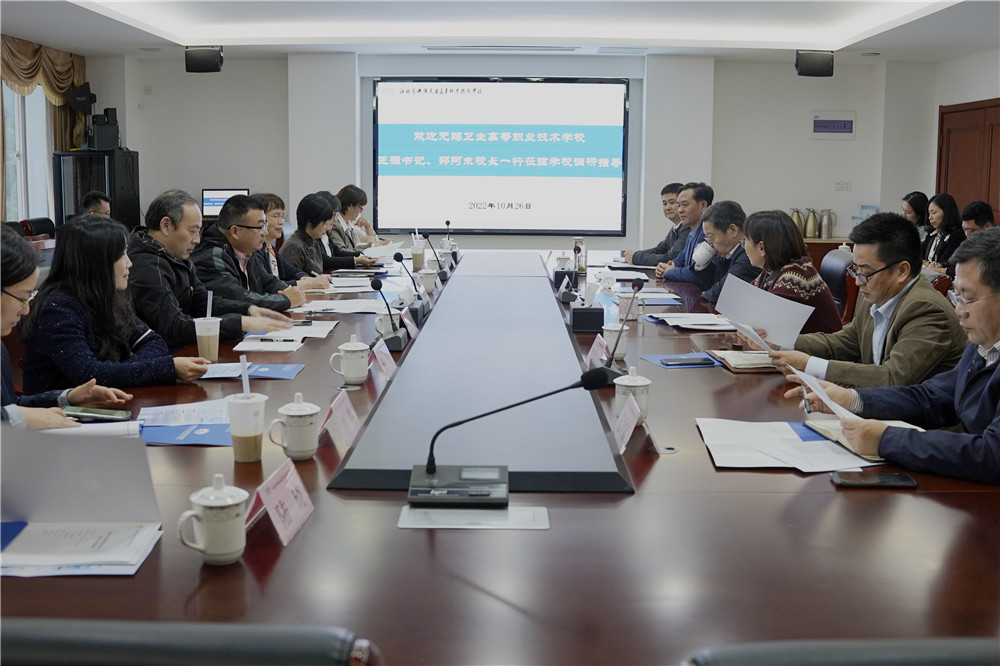 10月26日,無錫衛(wèi)生高等職業(yè)技術(shù)學校黨委書記王強,校長、黨委副書記邵阿末一行蒞臨學校調(diào)研指導工作。學校黨委書記、校長李虎,學校黨委委員、副校長耿興華、倪依純、紀委書記邢勇、副校長范次猛出席座談交流會,會議由學校黨委副書記、五級職員朱雨蘭主持。