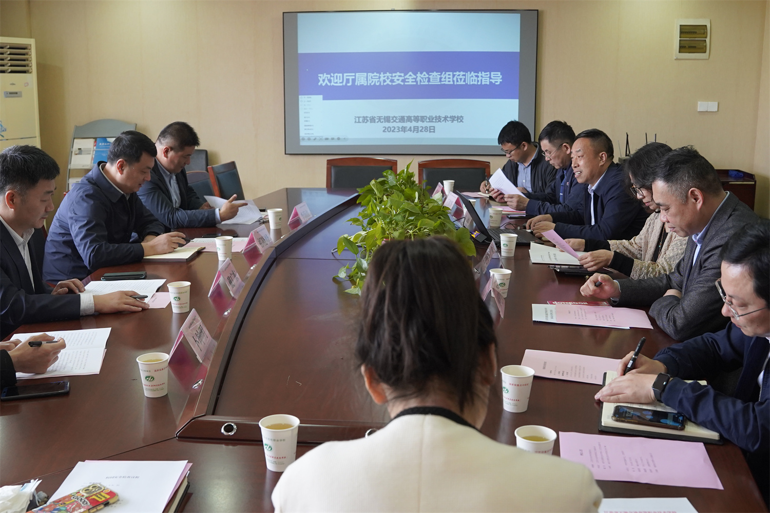 4月28日,廳屬院校安全檢查組一行4人在組長(zhǎng)江蘇汽車(chē)技師學(xué)院副院長(zhǎng)祁曉峰的帶領(lǐng)下蒞臨學(xué)校開(kāi)展校園安全檢查工作。學(xué)校黨委副書(shū)記、五級(jí)職員朱雨蘭出席會(huì)議并講話(huà),學(xué)校教務(wù)處、安全保衛(wèi)處、后勤管理處、學(xué)生工作處、校區(qū)辦公室等部門(mén)負(fù)責(zé)人參會(huì)。