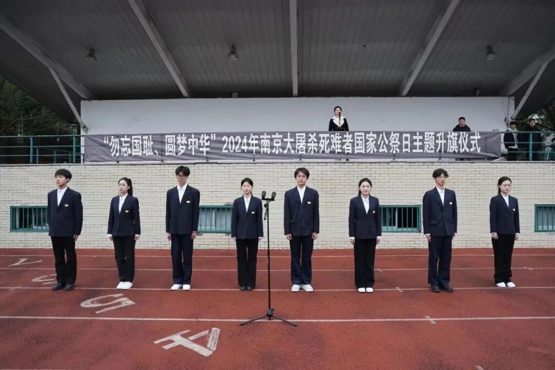 2024年12月13日,學(xué)校師生齊聚操場(chǎng),舉行“勿忘國(guó)恥,圓夢(mèng)中華”——第11個(gè)南京大屠殺死難者國(guó)家公祭日主題升旗儀式,引導(dǎo)同學(xué)們銘記歷史,珍惜和平,居安思危,砥礪前行。校黨委委員、副校長(zhǎng)王玨出席儀式并講話,全校師生代表1500余人參加了升旗儀式。