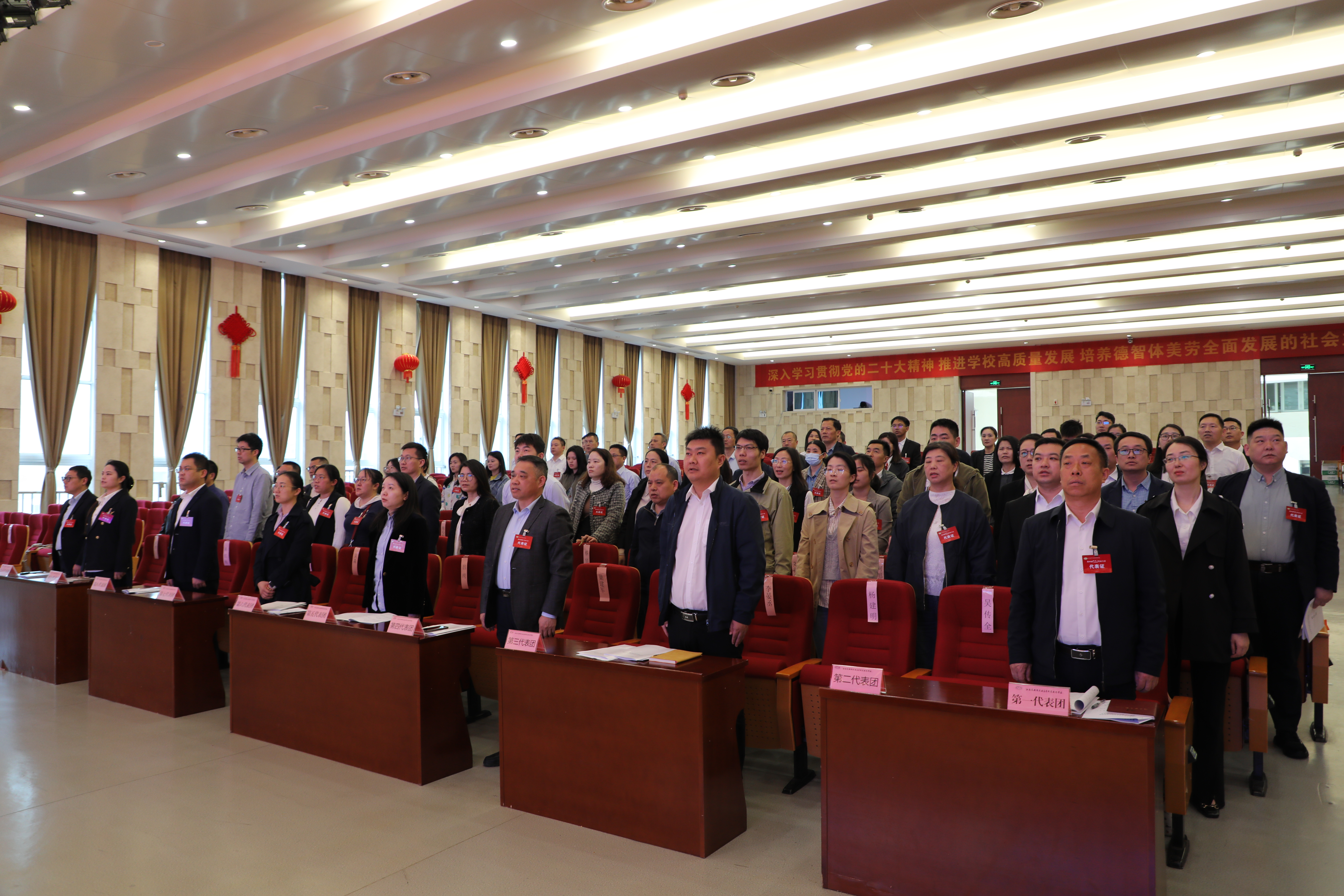 4月12日,學校第四屆教職工代表大會暨工會會員代表大會第二次會議在大禮堂隆重開幕。學校領(lǐng)導(dǎo)班子全體成員、教代會與工代會正式代表及列席代表98人齊聚一堂,共商學校發(fā)展大計。大會在莊嚴的國歌聲中拉開序幕。會議由學校黨委委員、副校長耿興華主持。
