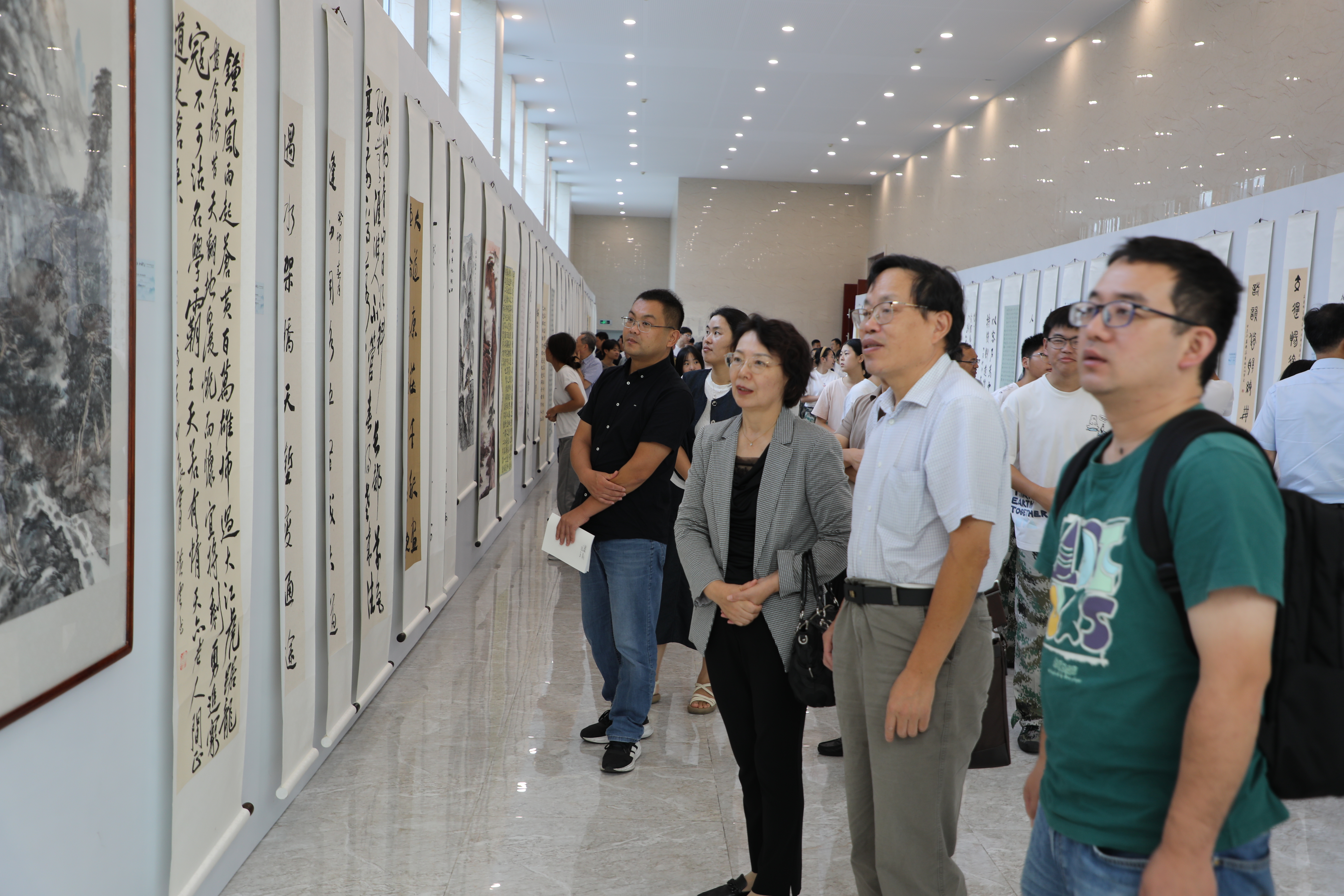 隨后,與會領(lǐng)導(dǎo)和嘉賓、師生代表共同參觀了“藝術(shù)進(jìn)校園·歌唱新時代”全省交通運(yùn)輸系統(tǒng)書畫精品展,近距離感受書畫藝術(shù)的獨特魅力。