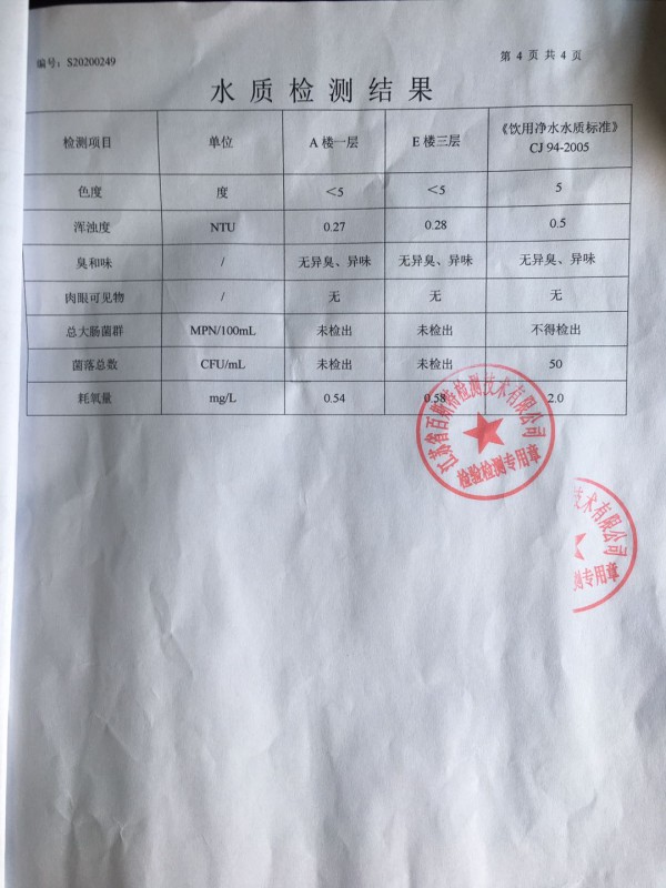答:百分之百安全。學(xué)校引進第三方檢測機構(gòu)對直飲水水質(zhì)進行實時監(jiān)控,并按照國家的相關(guān)規(guī)定進行檢測,出示的檢測報告顯示,學(xué)校的直飲水水質(zhì)完全符合安全水質(zhì)的標準。有效的改善了學(xué)校水資源的服務(wù)供應(yīng)。
