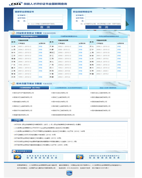 為做好技能人才評價(jià)制度改革工作,健全完善技能人才評價(jià)體系,提高技能人才評價(jià)工作技術(shù)指導(dǎo)和服務(wù)能力,經(jīng)研究,決定對國家職業(yè)資格工作網(wǎng)進(jìn)行更名和升級改版,將“國家職業(yè)資格工作網(wǎng)” 網(wǎng)站名稱變更為“技能人才評價(jià)工作網(wǎng)”,域名繼續(xù)沿用www.osta.org.cn;將“國家職業(yè)資格證書全國聯(lián)網(wǎng)查詢系統(tǒng)”變更為“技能人才評價(jià)證書全國聯(lián)網(wǎng)查詢系統(tǒng)”,包含技能人員國家職業(yè)資格證書查詢和職業(yè)技能等級證書查詢,域名統(tǒng)一使用zscx.osta.org.cn,域名jndj.osta.org.cn同時(shí)有效。
