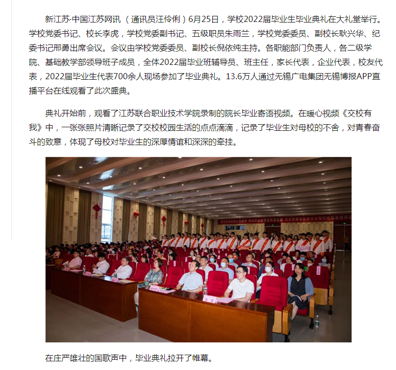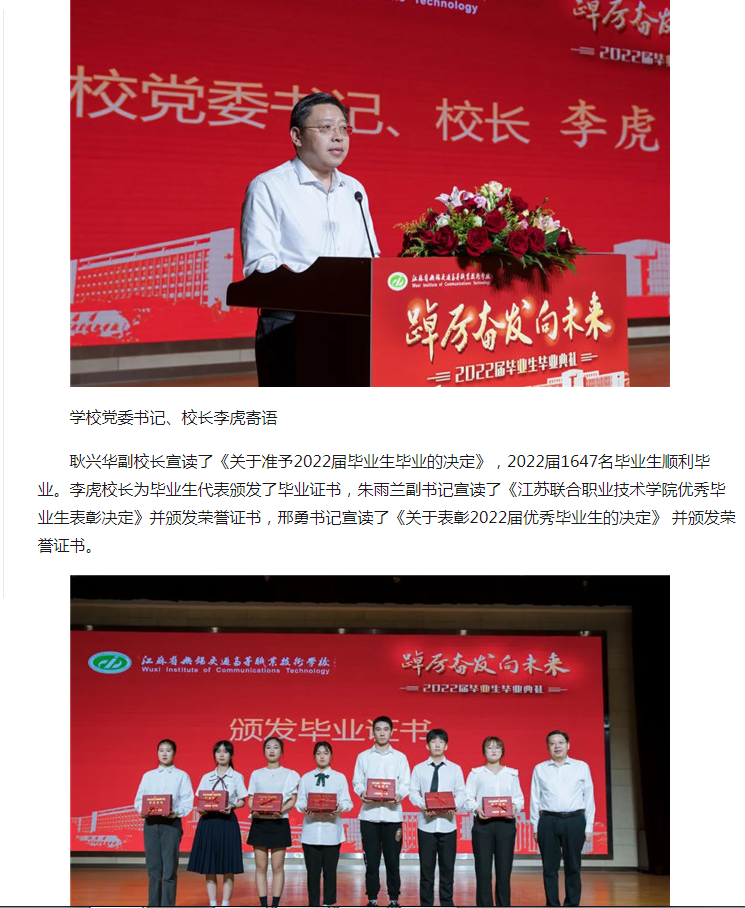 中江網(wǎng):踔厲奮發(fā)向未來 江蘇省無錫交通高等職業(yè)技術(shù)學(xué)校舉行2022屆畢業(yè)生畢業(yè)典禮
