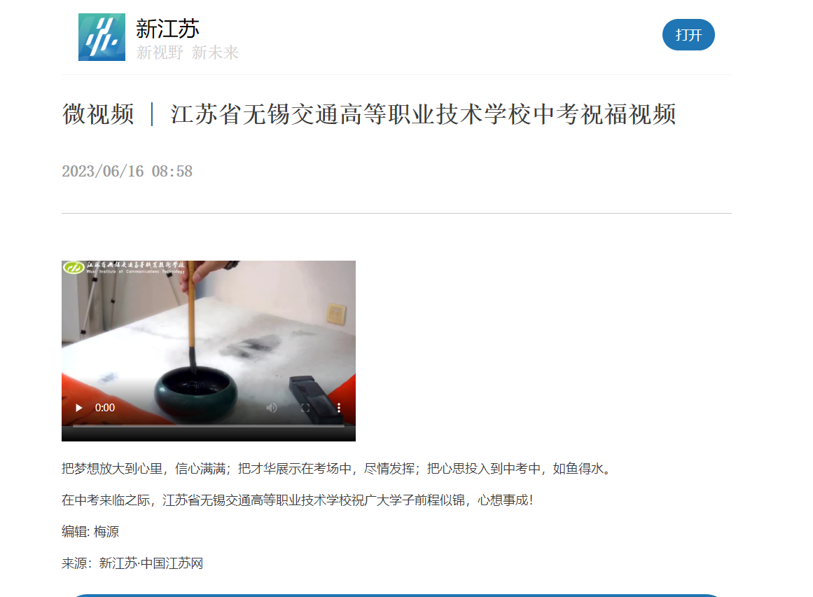 新江蘇:微視頻 | 江蘇省無(wú)錫交通高等職業(yè)技術(shù)學(xué)校中考祝福視頻