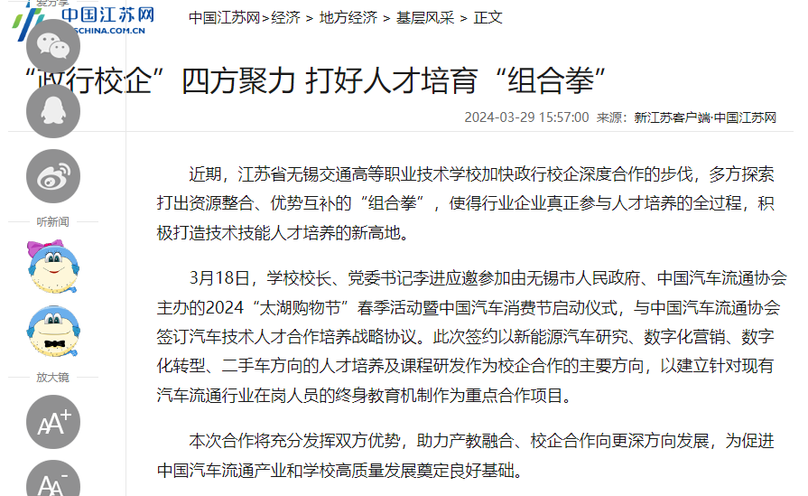 江蘇無(wú)錫:“政行校企”四方聚力 打好人才培育“組合拳”