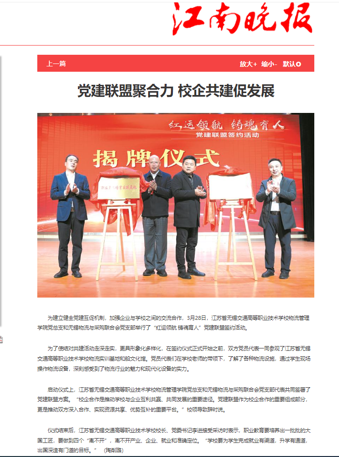 江南晚報(bào):黨建聯(lián)盟聚合力 校企共建促發(fā)展
