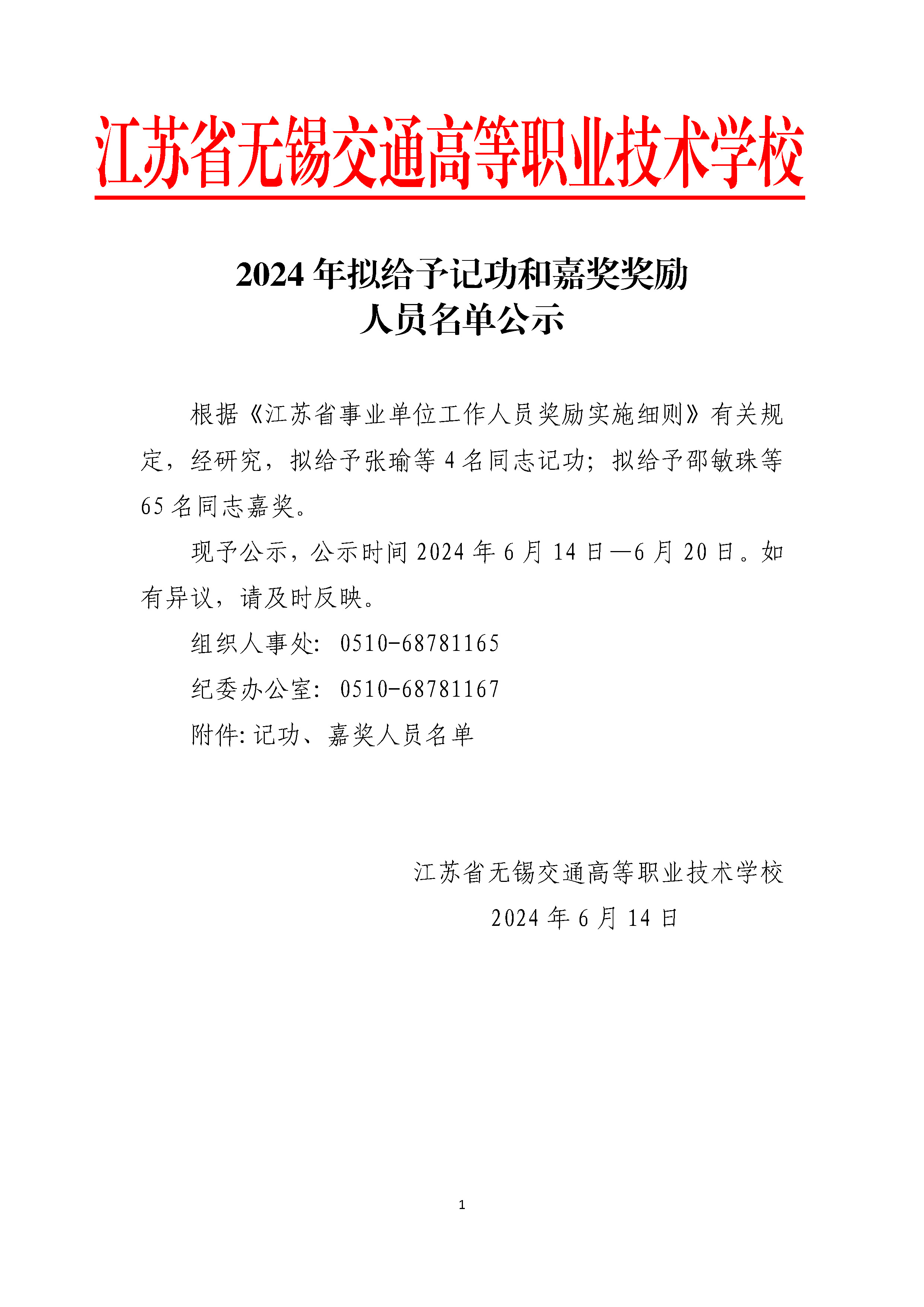 2024年擬給予記功和嘉獎(jiǎng)獎(jiǎng)勵(lì)人員名單公示