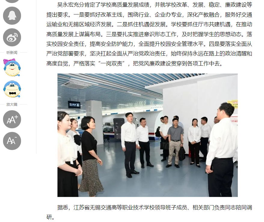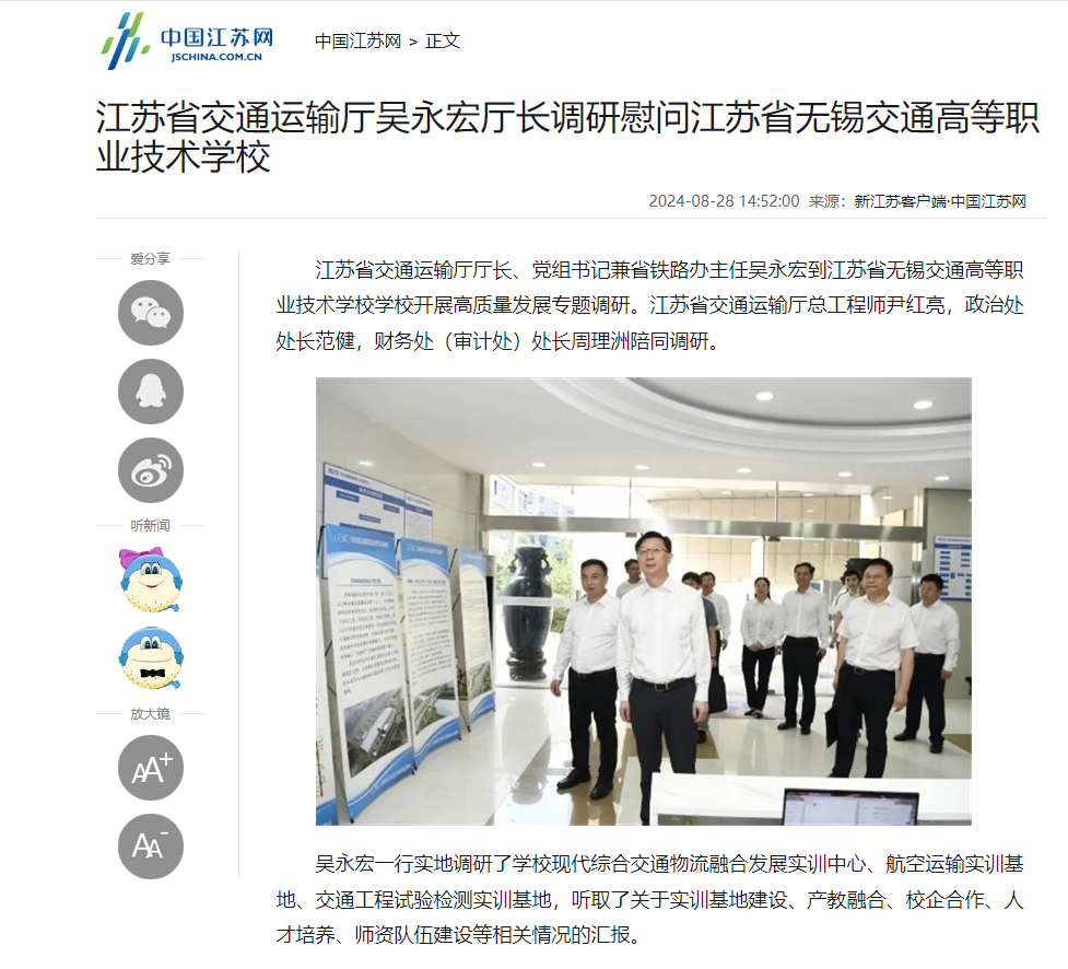 中江網(wǎng):江蘇省交通運(yùn)輸廳吳永宏廳長調(diào)研慰問江蘇省無錫交通高等職業(yè)技術(shù)學(xué)校