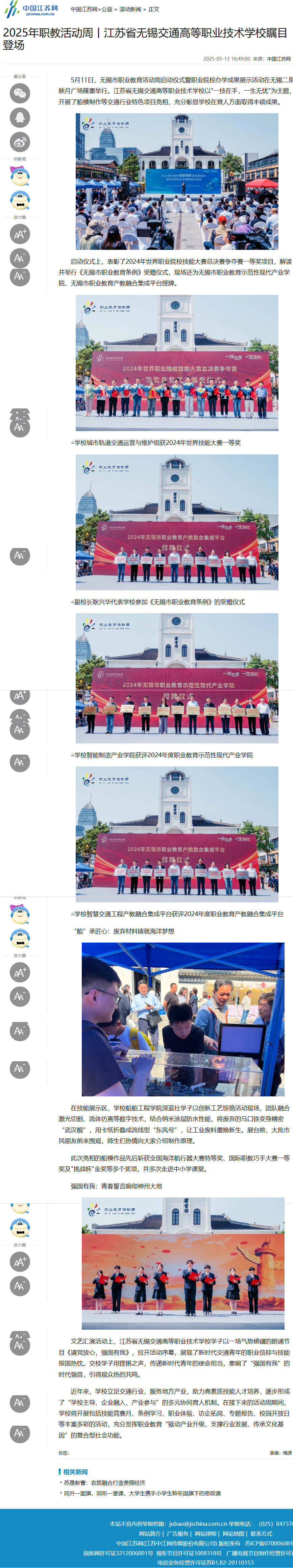 中江網(wǎng):2025年職教活動(dòng)周丨江蘇省無錫交通高等職業(yè)技術(shù)學(xué)校矚目登場(chǎng)