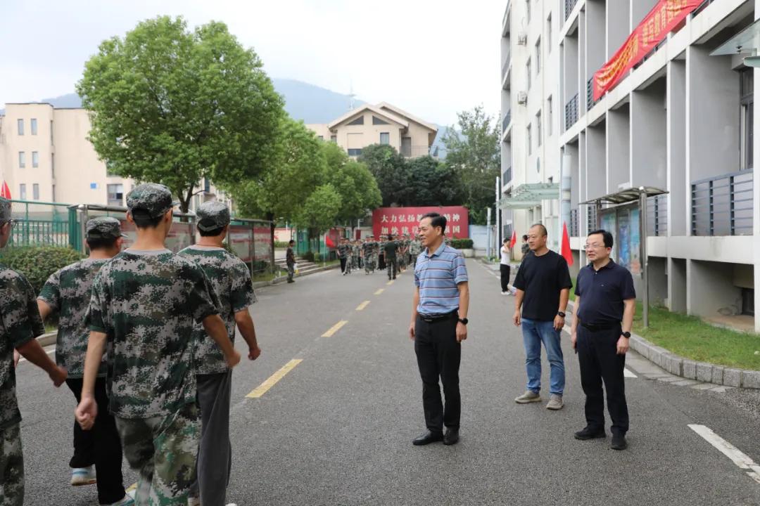 校領(lǐng)導(dǎo)分別前往操場(chǎng)等訓(xùn)練場(chǎng)地慰問(wèn)并觀摩學(xué)生訓(xùn)練,關(guān)心詢(xún)問(wèn)學(xué)生們身體狀況。校領(lǐng)導(dǎo)高度贊揚(yáng)了同學(xué)們?cè)谟?xùn)練中展現(xiàn)出的飽滿(mǎn)精神、嚴(yán)明紀(jì)律和優(yōu)良作風(fēng),對(duì)大家取得的階段性訓(xùn)練成果給予充分肯定,并對(duì)教官們嚴(yán)謹(jǐn)專(zhuān)業(yè)的教導(dǎo)表示感謝。同時(shí)叮囑在場(chǎng)職能部門(mén)要切實(shí)關(guān)心軍訓(xùn)學(xué)生生活,做好飲食安排、防暑降溫和醫(yī)療保障等工作,共同交上一份滿(mǎn)意的軍訓(xùn)答卷。