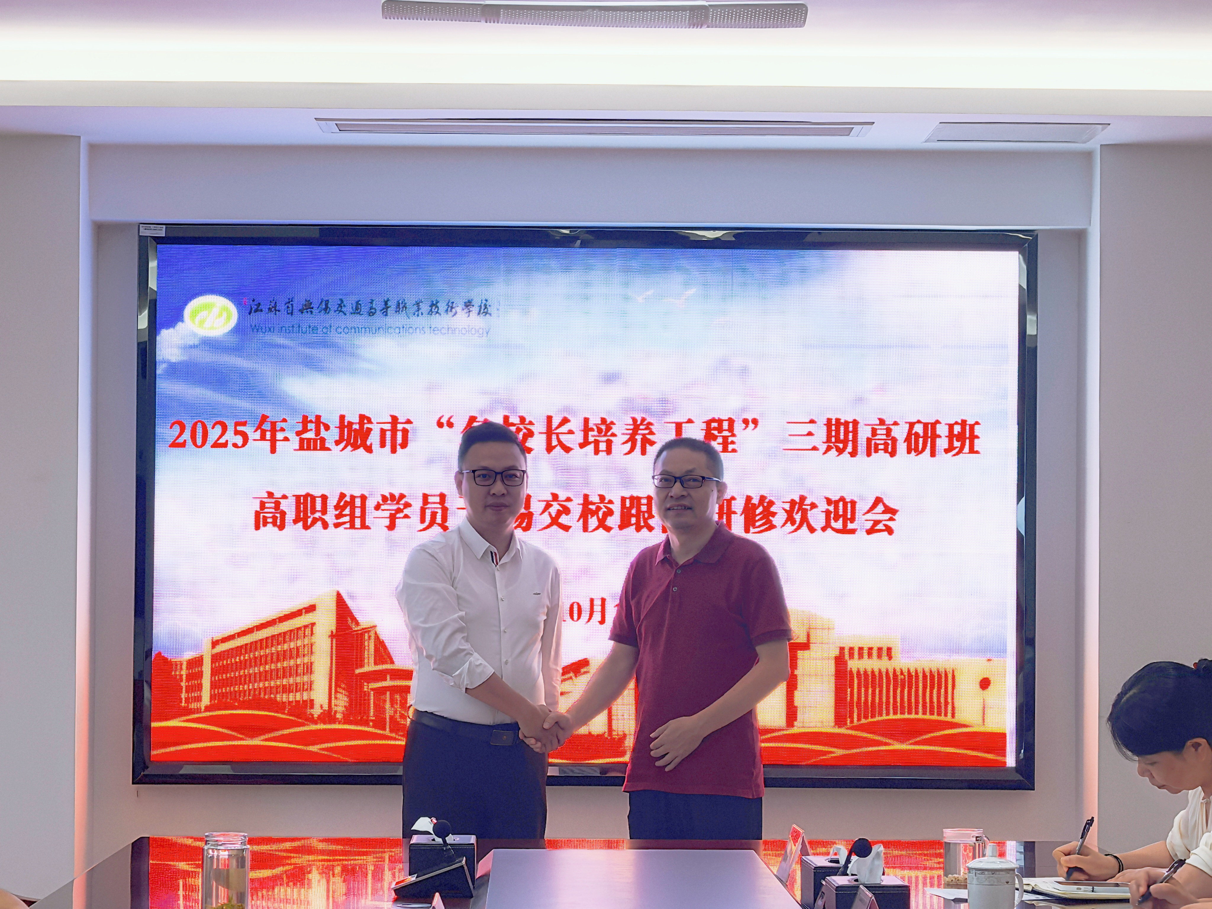根據(jù)江蘇省教師培訓(xùn)中心和江蘇教育行政干部培訓(xùn)中心安排,2025年10月13日上午,學(xué)校在512會(huì)議室舉行鹽城市“名校長培養(yǎng)工程”三期高研班高職組學(xué)員跟崗研修歡迎會(huì),鹽城海洋職業(yè)學(xué)校黨委書記王海濤,現(xiàn)代服務(wù)系黨支部書記、主任卞鵬和鹽城機(jī)電高等職業(yè)技術(shù)學(xué)校副校長祁玉洲等3名跟崗學(xué)員參加歡迎會(huì),學(xué)校黨委書記李進(jìn)、校長耿興華、副校長范次猛出席會(huì)議,相關(guān)職能部門負(fù)責(zé)人和院部負(fù)責(zé)人參加會(huì)議,會(huì)議由范次猛副校長主持。