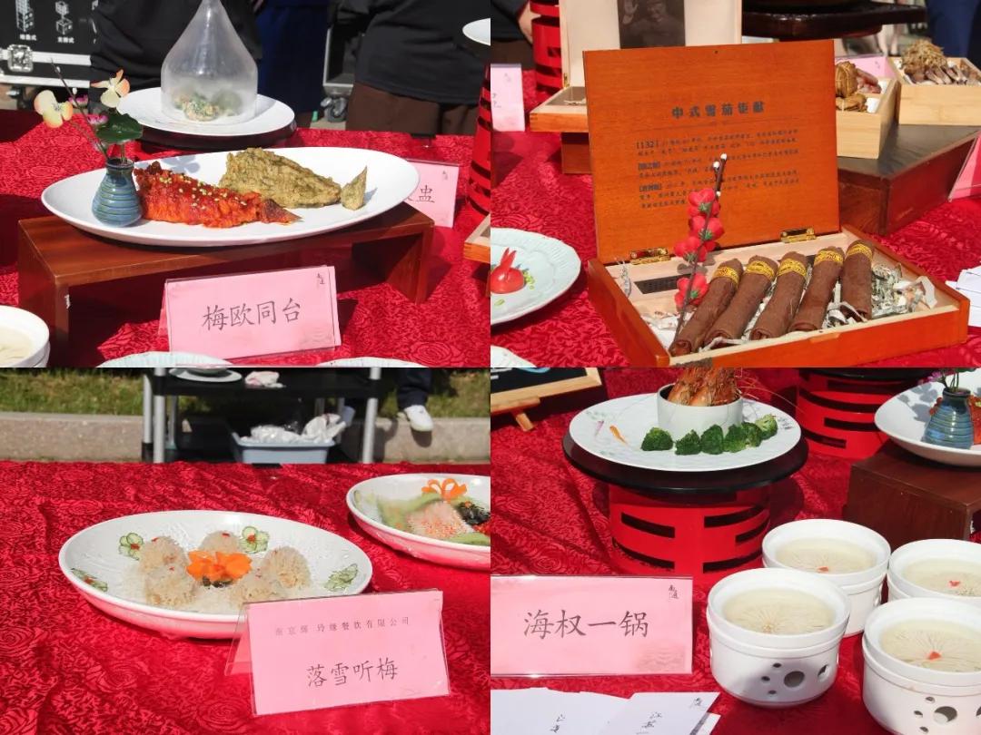 活動現(xiàn)場,人聲鼎沸、鑼鼓喧天。各食堂分別展示各自特色菜,其中,由江蘇一城謇餐餐飲管理有限公司提供的南通頭菜、生生不息、五山疊翠、海權(quán)一鍋、梅歐斗艷、濠水碧波盅等六道菜品別具特色。此外,現(xiàn)場地域飲食文化創(chuàng)意美食引爆味蕾。?徐州烤肉筋、陜西肉夾饃、老長沙臭豆腐、冰糖葫蘆等小吃攤位引得師生紛紛駐足。非遺傳承人現(xiàn)場繪制的糖畫糖人在陽光下透亮如藝術(shù)品??,攤位前,老師傅舀一勺琥珀色的糖漿,手腕輕抖,糖絲如金線般在石板上游走,轉(zhuǎn)眼間活靈活現(xiàn)的龍形糖畫便躍然紙上。