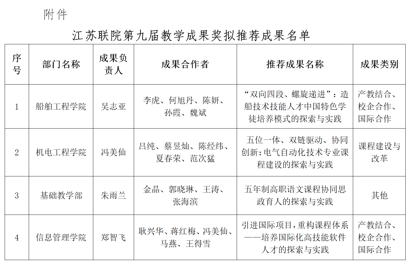 附件 江蘇聯(lián)院第九屆教學(xué)成果獎(jiǎng)擬推薦成果名單