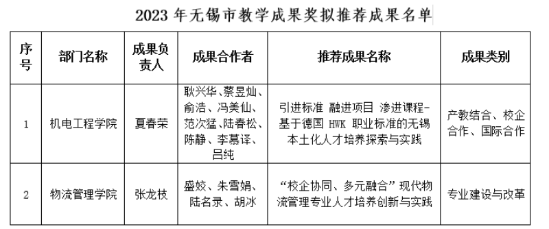 根據(jù)無錫市教育局《關(guān)于做好2023年無錫市教學(xué)成果獎(jiǎng)申報(bào)評選工作的通知》(錫教函〔2023〕152號),學(xué)校組織開展了2023年無錫市教學(xué)成果獎(jiǎng)的申報(bào)推薦工作。通過個(gè)人申報(bào)、院部遴選推薦、學(xué)校教學(xué)工作委員會評審,結(jié)合學(xué)?!蛾P(guān)于公布2023年學(xué)校教學(xué)成果獎(jiǎng)獲獎(jiǎng)項(xiàng)目的通知》(省錫交教(2023)17號),報(bào)校領(lǐng)導(dǎo)研究決定,擬報(bào)送以下教學(xué)成果為我校報(bào)送作品。