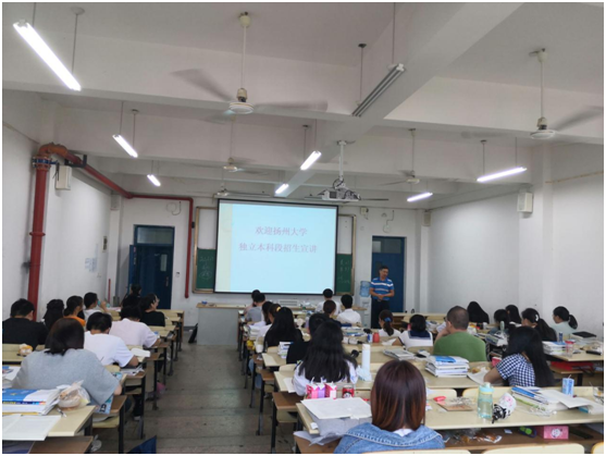 為進(jìn)一步增強(qiáng)我校學(xué)生對(duì)揚(yáng)州大學(xué)專接本獨(dú)立本科段學(xué)習(xí)的認(rèn)識(shí),拓寬學(xué)生的升學(xué)渠道,6月5號(hào)上午揚(yáng)州大學(xué)焦勝利主任一行來(lái)我校進(jìn)行宣講。