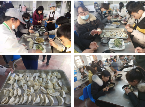 活動過程中,學(xué)生們熱情很高,蘇北同學(xué)會包餃子,蘇南同學(xué)會包餛飩,大家相互傳授技巧,不會包的同學(xué)就從食堂阿姨那取經(jīng),指導(dǎo)老師也一起參與實踐。隨著大家的努力,一個個奇形怪狀的餃子出來了,有圓的、有長的,千奇百怪,大家都樂在其中,場面十分熱鬧。在大家的歡聲笑語中一盤盤熱騰騰的餃子,端上了桌子,大家一起品嘗著自己動手包出的餃子。