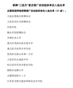 學(xué)校入選中國(guó)橋牌協(xié)會(huì)橋牌“三進(jìn)月”普及推廣活動(dòng)組織單位