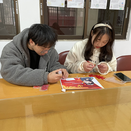 為慶祝黨建立100周年,提升學(xué)生對(duì)黨的認(rèn)識(shí),3月17日中午,演講與朗誦協(xié)會(huì)組織開(kāi)展“青春獻(xiàn)禮百年慶,我心向黨葆初心”之手工活動(dòng)。此次活動(dòng)在大學(xué)生活動(dòng)中心111展開(kāi),兩位指導(dǎo)老師和十余位學(xué)生參加。