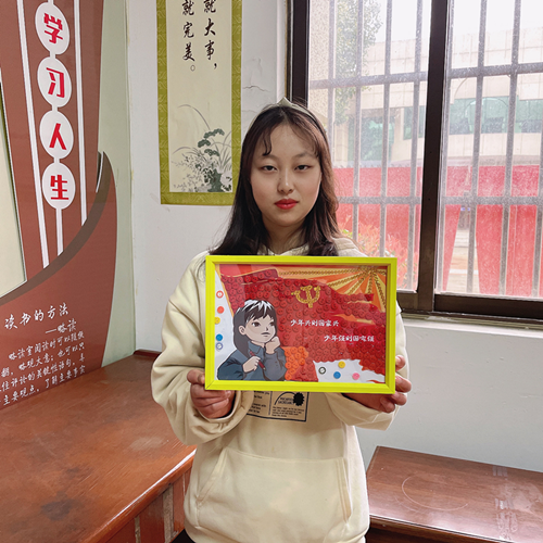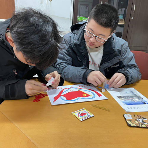 活動(dòng)開(kāi)始之初,學(xué)生以小組為單位,選取手工材料,通過(guò)合作互助,完成手工。與此同時(shí),指導(dǎo)老師對(duì)其進(jìn)行黨徽介紹以及黨史宣講,使同學(xué)們?cè)谑止ぶ谱鞯耐瑫r(shí),增加對(duì)黨的認(rèn)識(shí)。