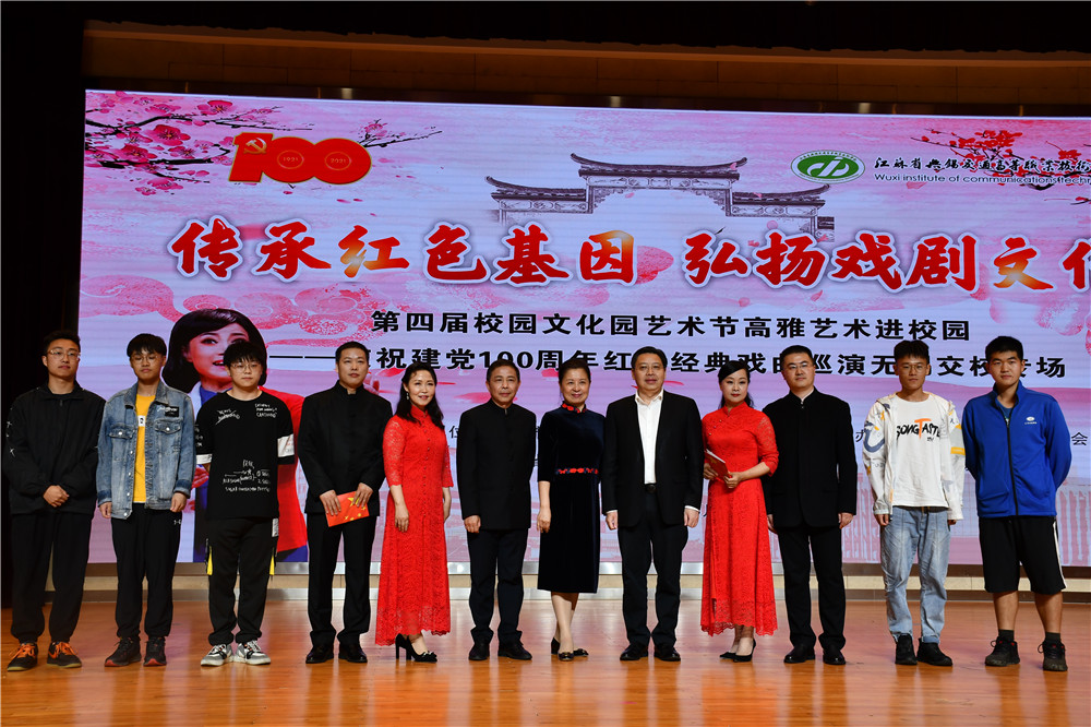 隨后,學(xué)校舉辦高雅藝術(shù)進校園活動。無錫市錫劇院的演員,為師生們帶來一場“傳承紅色基因 弘揚戲劇文化”慶祝建黨100周年紅色經(jīng)典戲曲巡演。精彩的演出贏得全場觀眾的陣陣掌聲與喝彩,他們紛紛表達對傳統(tǒng)地方戲曲的喜愛與對現(xiàn)場舞臺效果的稱贊。