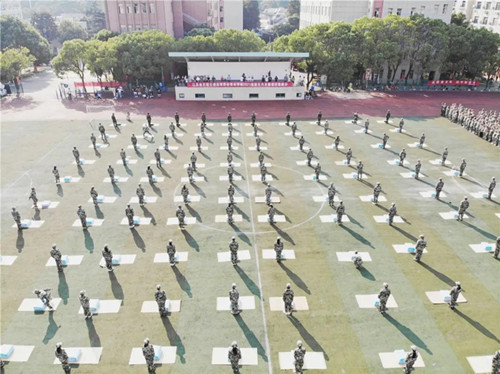 各學(xué)院學(xué)工領(lǐng)導(dǎo)、班主任、全體教官和新生到場觀摩。