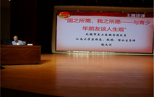5月18日,學校在大禮堂組織開展了“喜迎二十大 永遠跟黨走 奮進新征程”主題團日活動暨集中入團儀式。學校黨委委員、副校長倪依純出席活動并講話、無錫市關工委報告團成員、江南大學原校長、教授、博士生導師陶文沂出席活動并開展主題講座。
