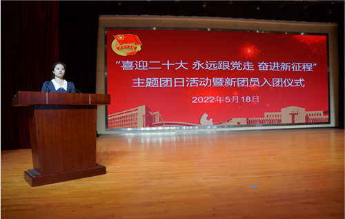 活動在莊嚴的國歌聲中拉開帷幕。入團儀式上,各學院團總支書記為新團員代表頒發(fā)團員證,佩戴團徽,并組織老團員重溫入團誓詞,新團員進行入團宣誓,全體人員共同接受了一次思想的升華和心靈的洗禮。新團員吳沁堯同學、老團員李丹鳳同學作為代表發(fā)言,她們均表示要緊跟習近平總書記“把青春獻給祖國”的號召,堅定不移的高舉團旗跟黨走。不負韶華、不負時代、不負人民,敢闖、敢干,以青年人的拼搏努力,來踐行“請黨放心,強國有我”的錚錚誓言。