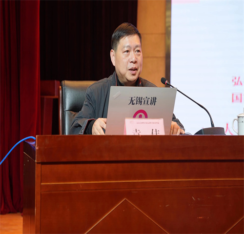 動(dòng)員會(huì)上,學(xué)校還邀請(qǐng)了無(wú)錫市委講師團(tuán)副團(tuán)長(zhǎng)袁偉為青年師生作輔導(dǎo)報(bào)告。他以《乘風(fēng)破浪 行穩(wěn)致遠(yuǎn)——以中國(guó)式現(xiàn)代化全面推進(jìn)中華民族偉大復(fù)興》為題,圍繞大會(huì)概況、理論闡釋和總結(jié)概括三個(gè)方面對(duì)對(duì)黨的二十大報(bào)告作了深入系統(tǒng)的解讀與闡釋。授課內(nèi)容系統(tǒng)全面、內(nèi)涵豐富、分析透徹、契合實(shí)踐,為全體青年師生深刻理解和準(zhǔn)確把握黨的二十大精神提供了思路和指導(dǎo),大家專注聽(tīng)講,認(rèn)真記錄,受益匪淺。