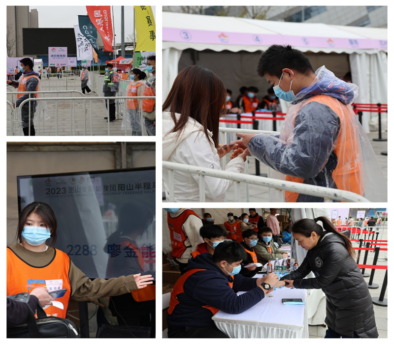 3月24日至25日,交校志愿者們7點(diǎn)不到就從學(xué)校出發(fā),奔赴惠山區(qū)全民健身中心從事賽前物料領(lǐng)取、號(hào)碼布發(fā)放、存衣包發(fā)放、人臉識(shí)別系統(tǒng)入場引導(dǎo)、檢錄、芯片檢測(cè)服務(wù)、現(xiàn)場秩序管理、畫面講解、外場指引等工作,直到晚上九點(diǎn)多才返回學(xué)校,用熱情、周到、細(xì)致的服務(wù)為2023陽山半程馬拉松保駕護(hù)航。