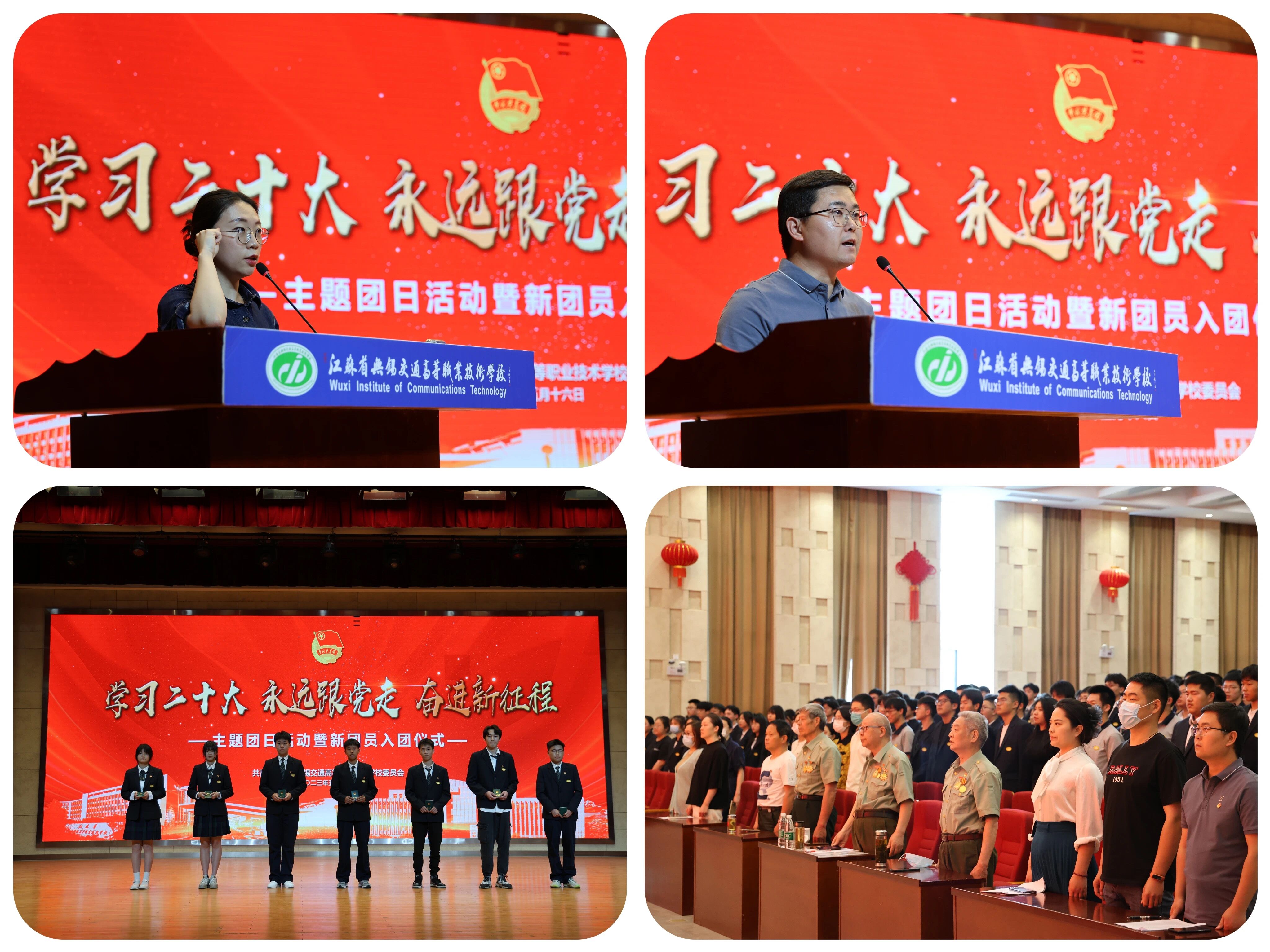 5月16日,學(xué)校在大禮堂組織開展了“學(xué)習(xí)二十大 永遠(yuǎn)跟黨走 奮進(jìn)新征程”主題團(tuán)日活動(dòng)暨新團(tuán)員入團(tuán)儀式?;顒?dòng)邀請(qǐng)了無(wú)錫市關(guān)工委報(bào)告團(tuán)成員姚炳華等一行四人出席活動(dòng)并開展專題講座。校團(tuán)委委員、各學(xué)院團(tuán)總支書記、新老團(tuán)員等600余人參加活動(dòng)?;顒?dòng)由校團(tuán)委委員任海波主持。