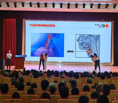 救護(hù)師以“理論+實(shí)操”相結(jié)合的方式進(jìn)行,重點(diǎn)對(duì)心肺復(fù)蘇和AED的使用等相關(guān)應(yīng)急救護(hù)知識(shí)展開(kāi)講解,并就如何科學(xué)規(guī)范把握黃金四分鐘的急救時(shí)間以及心肺復(fù)蘇進(jìn)行了現(xiàn)場(chǎng)演示,最大限度增強(qiáng)事故現(xiàn)場(chǎng)救護(hù)真實(shí)性和有效性,使學(xué)生們從聽(tīng)覺(jué)、視覺(jué)、觸覺(jué)上加深對(duì)急救知識(shí)的掌握。