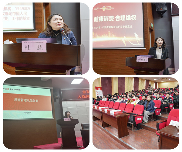 在第42個(gè)消費(fèi)者權(quán)益日來(lái)臨之際,為科普金融安全知識(shí),普及金融消費(fèi)者“八大基本權(quán)利”,提升青年學(xué)生金融素養(yǎng)和風(fēng)險(xiǎn)防范意識(shí),傳遞健康、文明、理性的消費(fèi)觀念,3月12日下午,人保壽險(xiǎn)無(wú)錫中支來(lái)校開(kāi)展“金融消保在身邊 保障權(quán)益防風(fēng)險(xiǎn)”金融消費(fèi)者權(quán)益保護(hù)教育宣傳活動(dòng)。校領(lǐng)導(dǎo)、人保壽險(xiǎn)無(wú)錫公司領(lǐng)導(dǎo)出席活動(dòng),200多名學(xué)校師生參與。