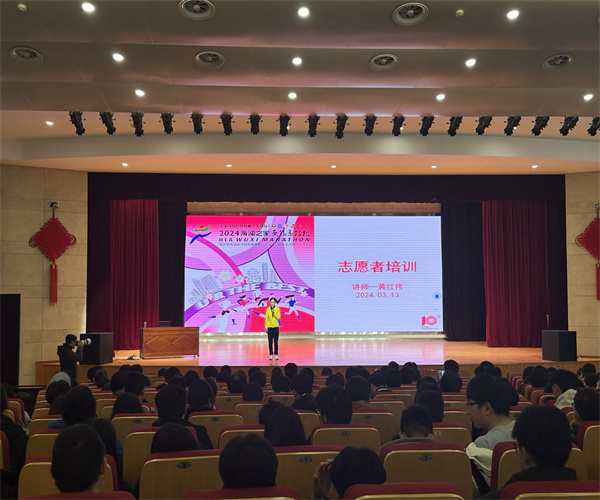 為保證比賽的順利進(jìn)行,3月13日,學(xué)校420余名馬拉松志愿者培訓(xùn)在大禮堂舉行,培訓(xùn)會上,組委會老師從馬拉松賽事相關(guān)信息、志愿者工作安排、志愿服務(wù)的要求和規(guī)范等方面對學(xué)校志愿者按崗位進(jìn)行培訓(xùn)指導(dǎo),旨在讓志愿者全面掌握無錫馬拉松賽事背景、組織情況,明確志愿者工作內(nèi)容和要點,加深志愿者對馬拉松賽事和服務(wù)內(nèi)容的了解。志愿者們在培訓(xùn)中認(rèn)真聽講,力求為參賽者提供細(xì)致、周到的服務(wù)。