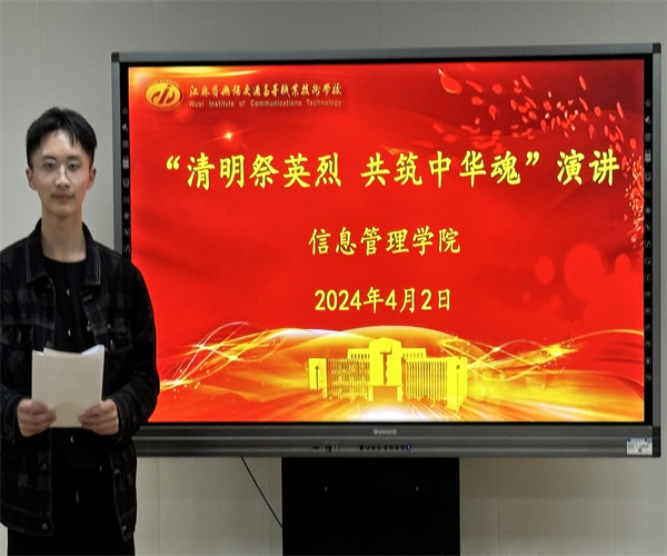 信息管理學(xué)院團(tuán)總支開展“清明祭英烈,共鑄中華魂”主題演講活動。同學(xué)們慷慨激昂地講述革命先烈的英勇故事,深刻體會新時代青年應(yīng)該珍惜來之不易的生活,奮發(fā)圖強,苦練技能,助力強國建設(shè)。