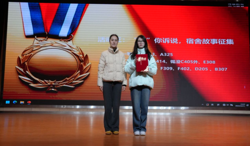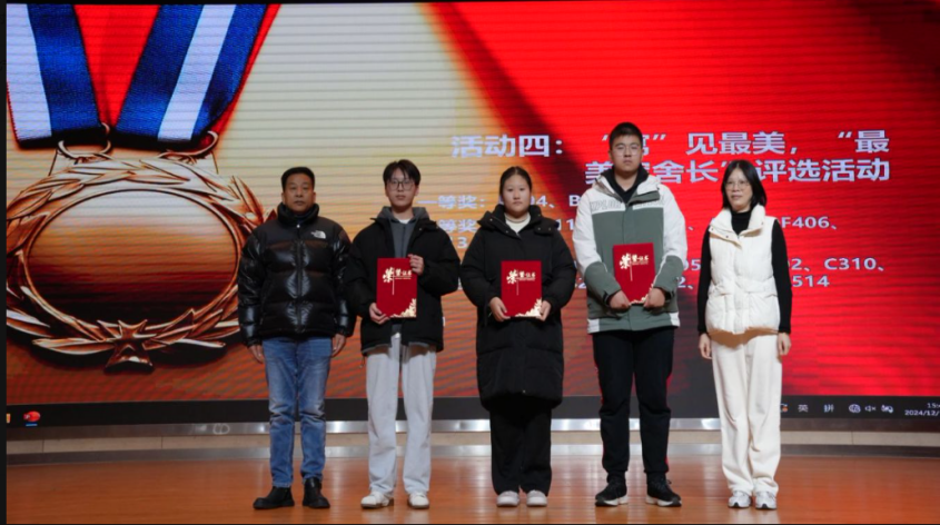 12月11日下午,我校2024年“宿舍文化節(jié)”評比頒獎(jiǎng)儀式暨宿舍長培訓(xùn)講座在大禮堂舉行。學(xué)生工作處副處長籍鑫慧,后勤管理處宿舍負(fù)責(zé)人,銀城物業(yè)總經(jīng)理,各學(xué)院學(xué)工領(lǐng)導(dǎo)參加頒獎(jiǎng)儀式,并為獲得獎(jiǎng)項(xiàng)的寢室學(xué)生代表發(fā)獎(jiǎng)狀和獎(jiǎng)品。