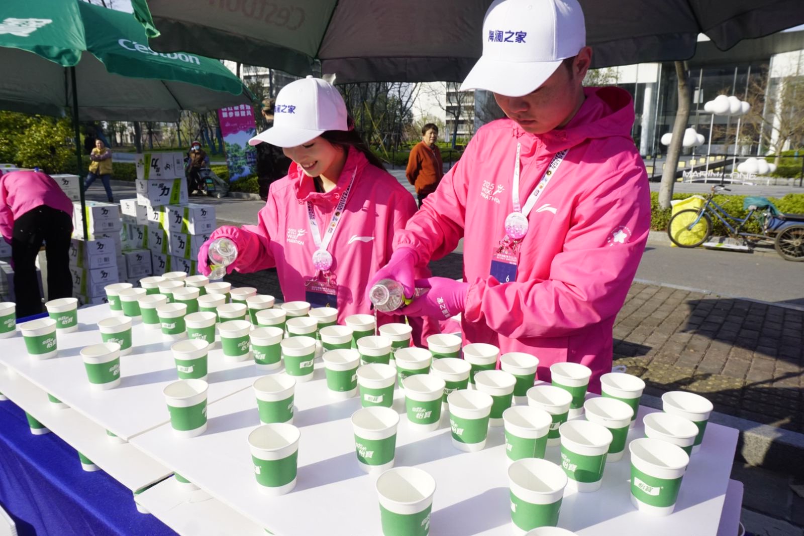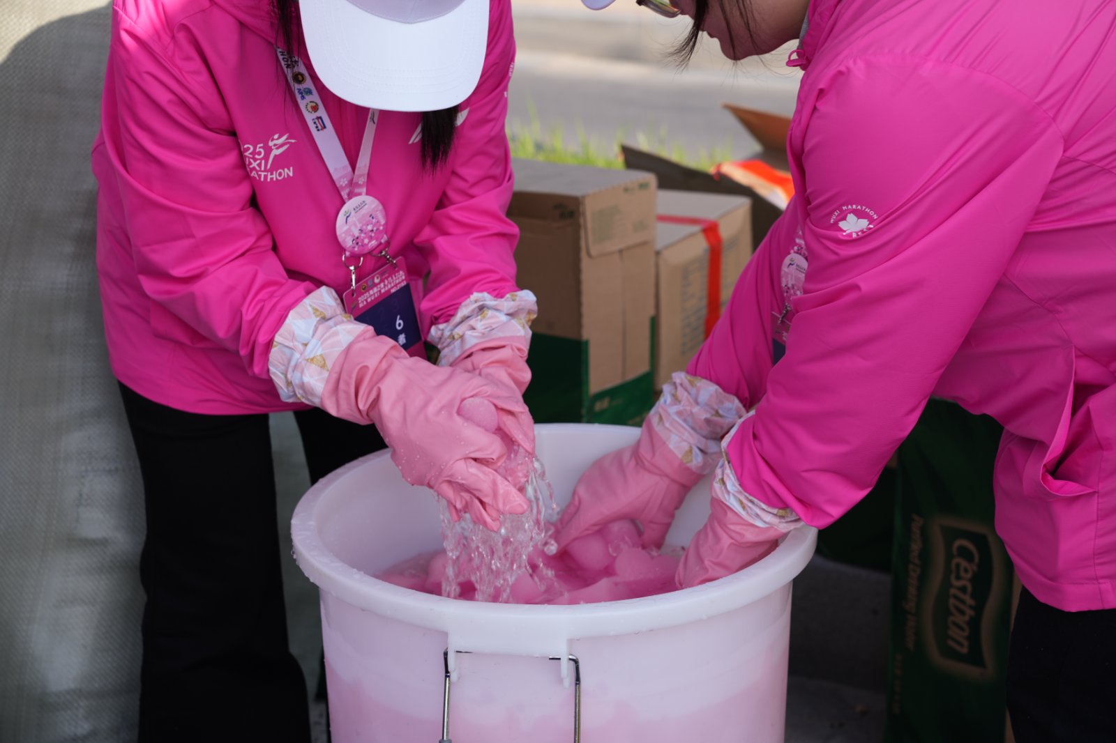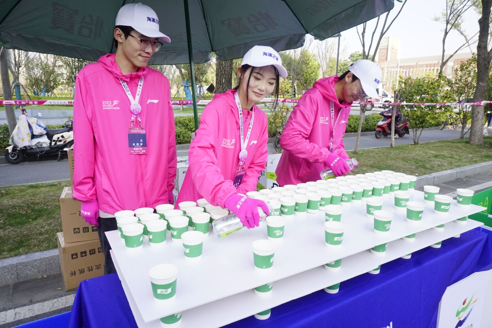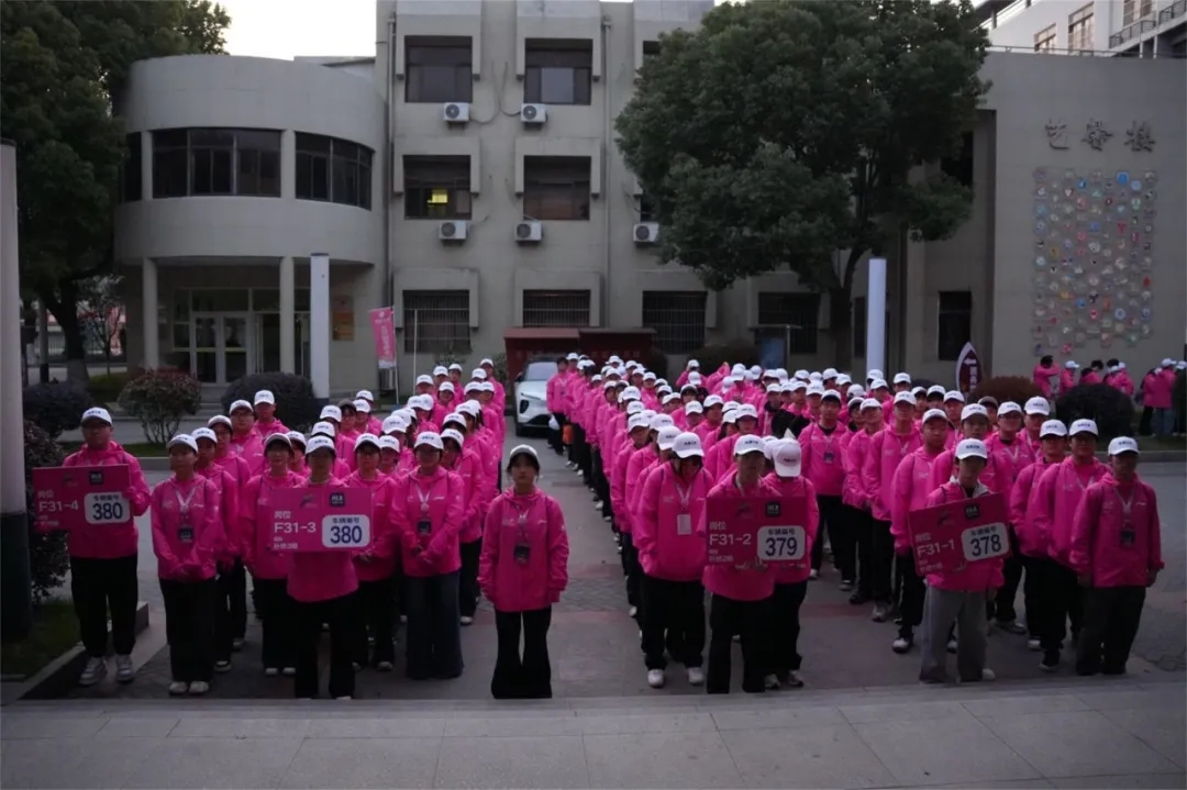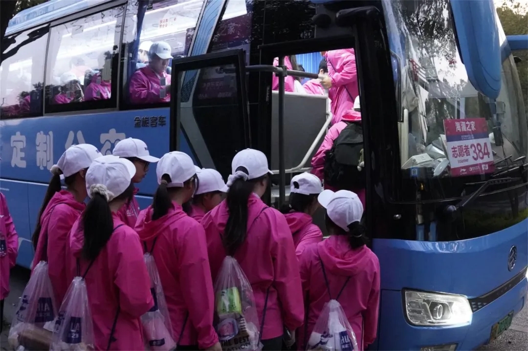 3月23日清晨6點(diǎn),當(dāng)城市還未完全“蘇醒”,停在無(wú)錫交校門(mén)口的大巴車(chē)外,已聚集了一群身著“櫻花粉”的志愿者。420余名馬拉松志愿者整裝待發(fā),即將前往無(wú)錫馬拉松保障點(diǎn)位。