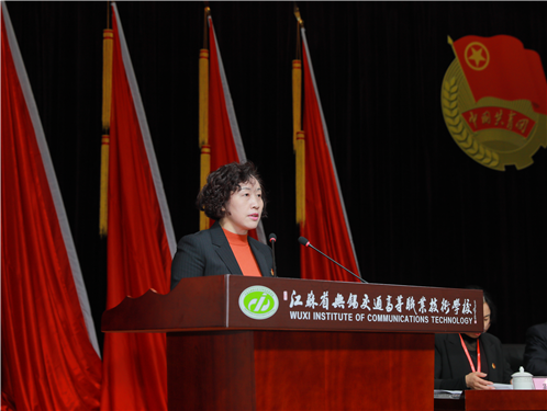 學(xué)校工會(huì)副主席毛蘭霞同志代表群團(tuán)組織致賀詞,誠(chéng)摯地希望我校工會(huì)與團(tuán)委、學(xué)生會(huì)能在此基礎(chǔ)上進(jìn)一步加強(qiáng)聯(lián)系,攜手共進(jìn)。她祝愿我校共青團(tuán)和學(xué)生會(huì)再創(chuàng)新輝煌,推動(dòng)我校各項(xiàng)工作再上新臺(tái)階;兄弟院校代表江蘇省交通技師學(xué)院團(tuán)委書記鄒明森同志致賀詞。他表示,此次團(tuán)學(xué)代會(huì)是無錫交校團(tuán)學(xué)工作發(fā)展進(jìn)程中的一件大事,堅(jiān)信充滿活力的團(tuán)委和學(xué)生會(huì)將以這次大會(huì)為契機(jī),在學(xué)校黨委的堅(jiān)強(qiáng)領(lǐng)導(dǎo)和上級(jí)各團(tuán)學(xué)組織的正確指導(dǎo)下,在無錫交校全體團(tuán)員和青年學(xué)生的共同努力下,以奮發(fā)的精神、昂揚(yáng)的斗志、務(wù)實(shí)的作風(fēng)、踏實(shí)的行動(dòng)創(chuàng)造更加輝煌的成績(jī)。